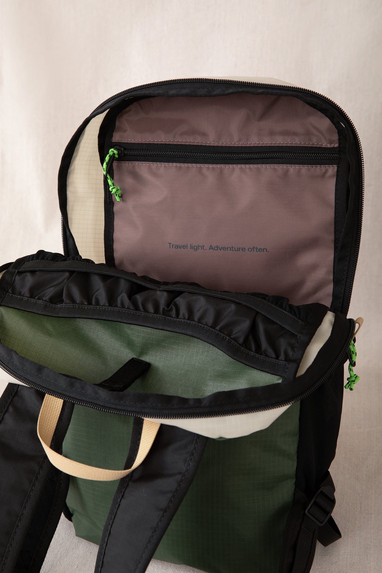 Ngăn chứa: 1 ngăn chính, túi zip trước, túi lưới hai bên