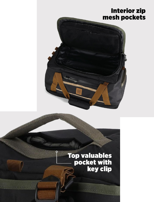 Tối ưu lưu trữ – Gọn gàng và ngăn nắpTúi Trống Hành Lý Topo Designs không chỉ rộng rãi với dung tích 40L mà còn được chia ngăn thông minh để giữ đồ đạc luôn gọn gàng: